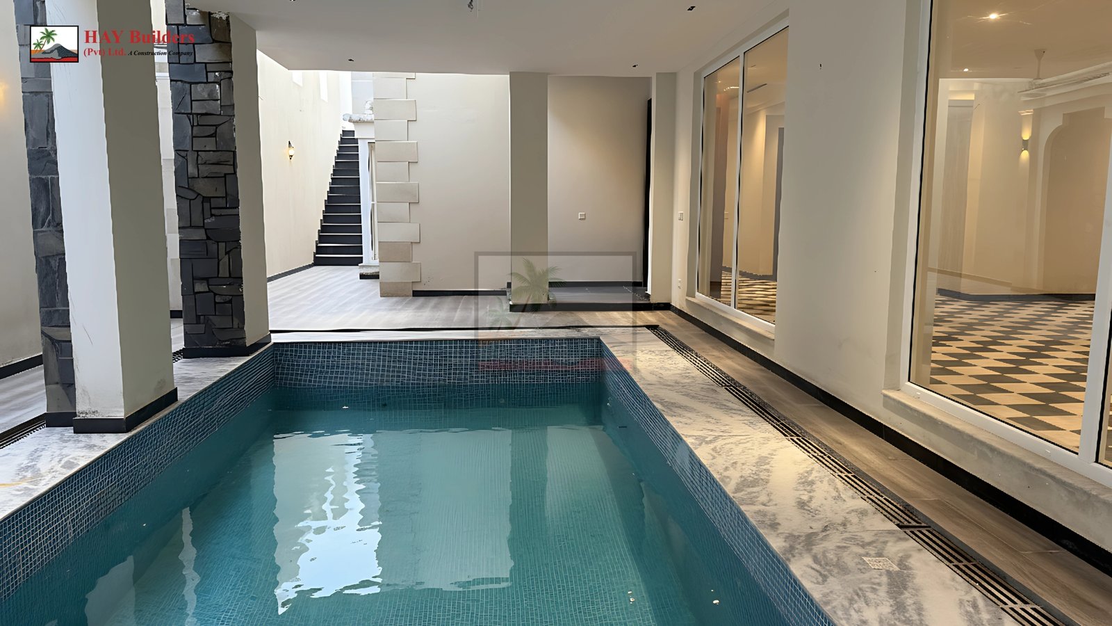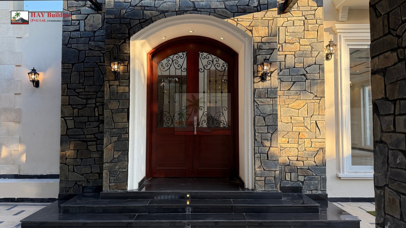 Each house is enhanced with an open swimming pool, bringing sophistication and luxury to everyday living. The front elevations of both homes are adorned with two-tone stone cladding, installed with remarkable detailing, while the boundary walls showcase the same refined craftsmanship that has become the hallmark of HAY Builders.